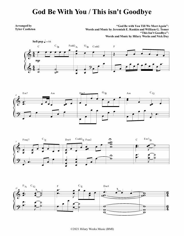 This beautiful duet weaves together the beloved hymn God Be with You Till We Meet Again with the tender original song This Isn’t Goodbye. With heartfelt lyrics that speak to loss, love, and the promise of reunion, this arrangement offers comfort to those navigating grief and hope to those holding on to faith. A moving piece for memorials, funerals, or any moment when words fall short and music can speak.